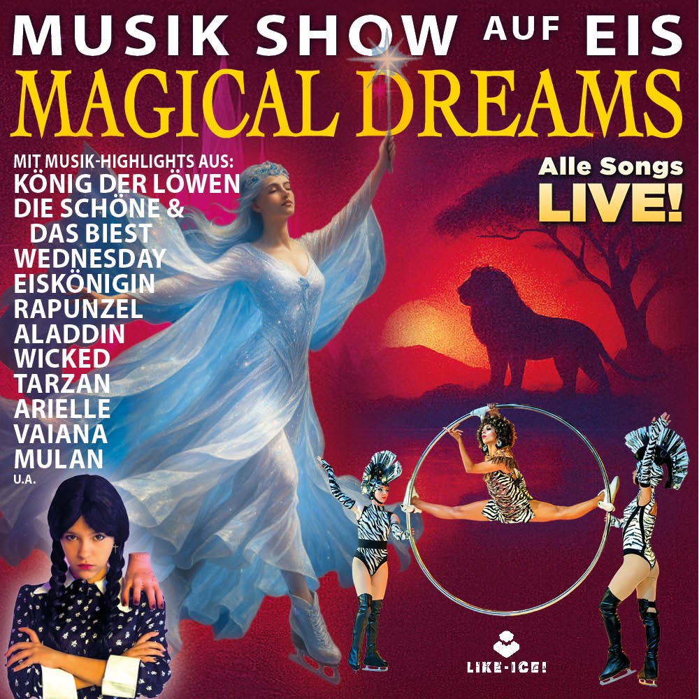 Diese spektakuläre Show entführt die Zuschauenden in eine Welt der ganz großen Gefühle – voller Magie und Emotionen. „Magical Dreams“ ist eine beeindruckende Kombination aus Solisten der Musicalszene, atemberaubenden Eiskunstläufern und akrobatischen Weltklasse-Darbietungen und entführt das Publikum in eine Fantasiewelt, in der alles möglich ist!