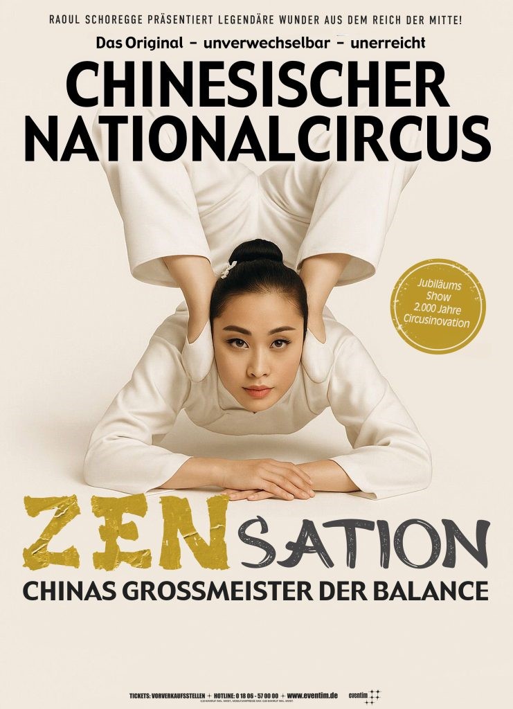Ein Handstand ist hier nicht nur ein Act – er ist ein Zustand der totalen Balance und Identifikation mit dem Sein. Mit der Show „ZENsation“ kehrt der Chinesische Nationalcircus zu seinen Wurzeln zurück: poetisch, philosophisch, physisch brillant. Eine Best-of-Show preisgekrönter Akrobatiknummern aus über 2.000 Jahren Zájì-Tradition, neu interpretiert von jungen Talenten aus Chinas besten Circus Akademien. Was bleibt, ist kollektives Staunen über eine Form der Körperkunst, die dem Betrachter die Schwerkraft vergessen lässt. Was entsteht, ist eine emotionale Reise durch das Reich der Mitte – eindrucksvoll, klar und erhaben. Die Bühne wird zu einem Tempel des Gleichgewichts. Es ist ein Neustart – und ein Heimkommen.